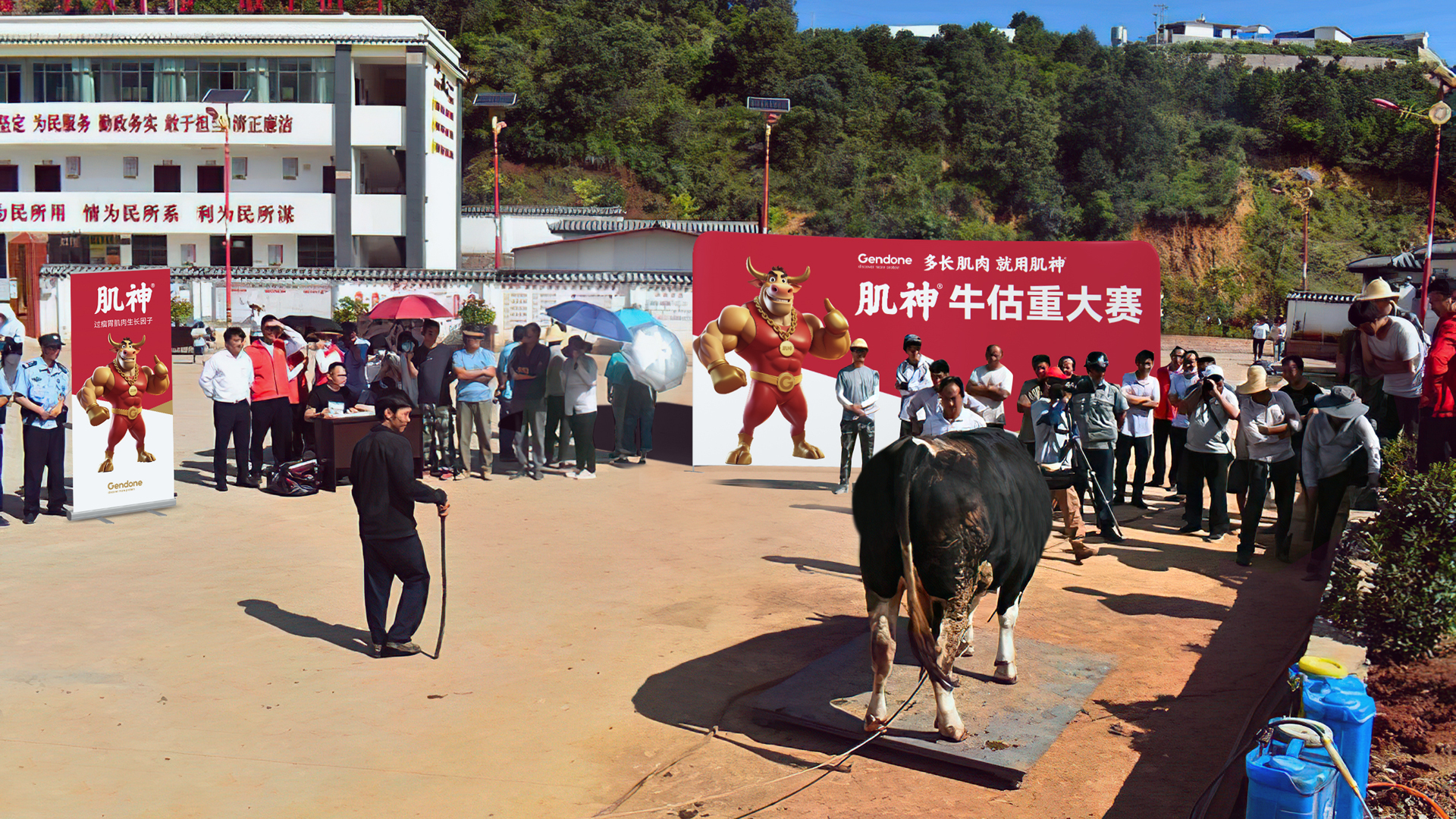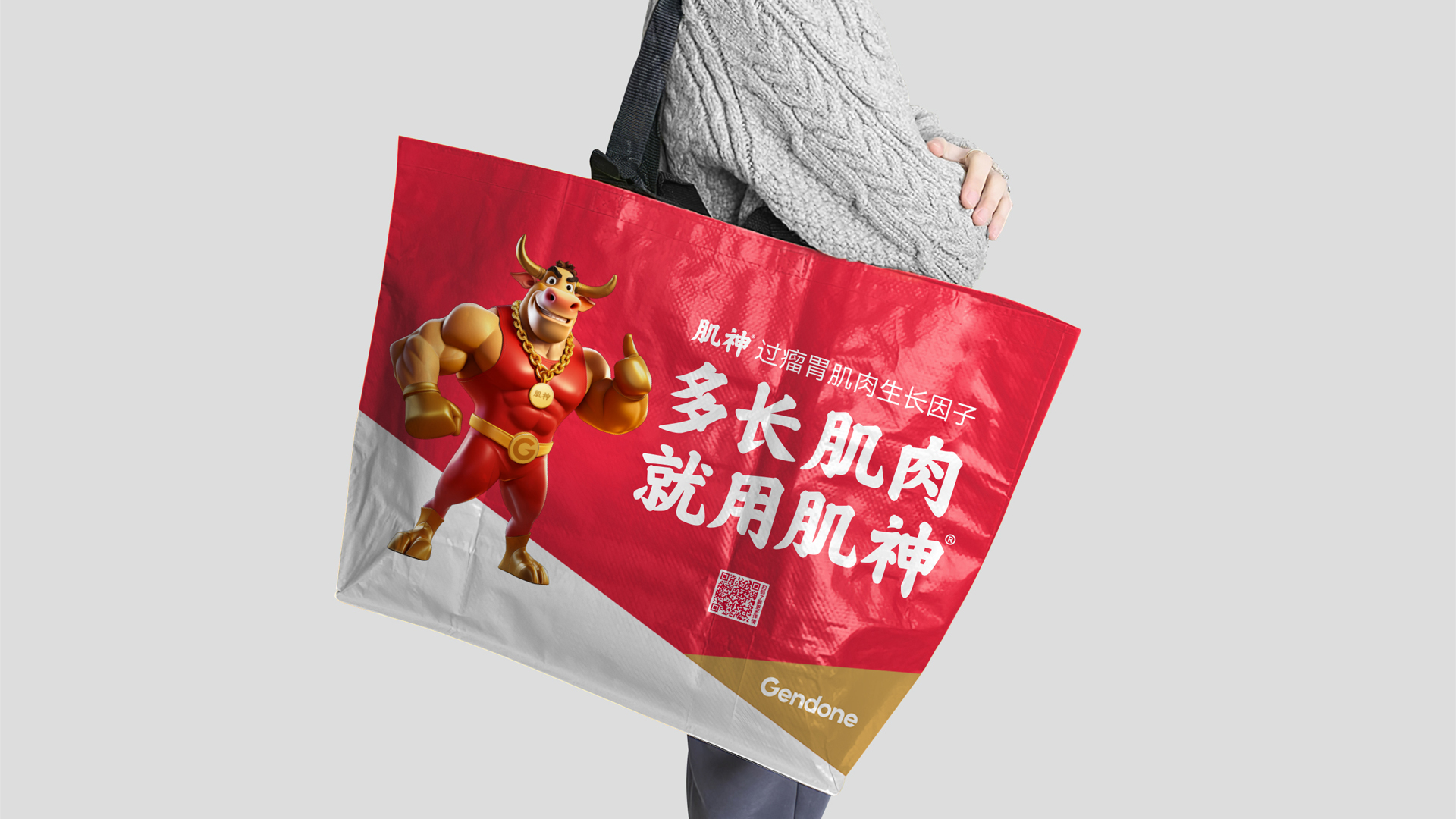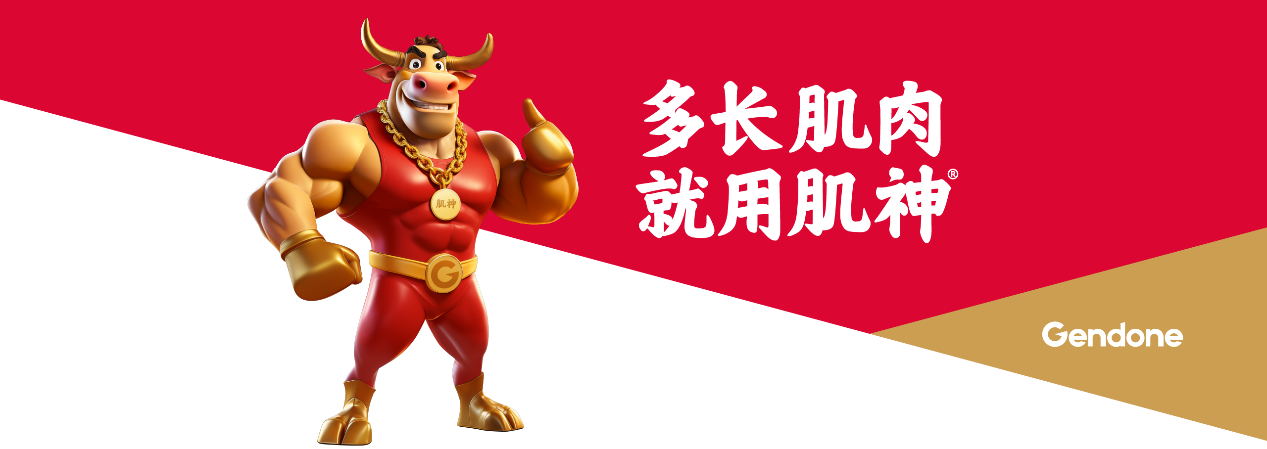 为使品牌价值可感可知,我们为肌神®打造专属拟人化超级IP形象。基于“神级角色”共识,我们创造了肌肉饱满、威猛挺拔的肌神®牛超级IP形象、羊毛下隐现力量线条的肌神®羊超级IP形象。并在形象中融入金牌、金腰带等冠军元素隐喻“冠军级成果”,设计自信点赞手势构建互动记忆点。肌神®IP形象极大地降低了品牌的记忆与传播成本,让品牌自身成为强大的沟通载体。